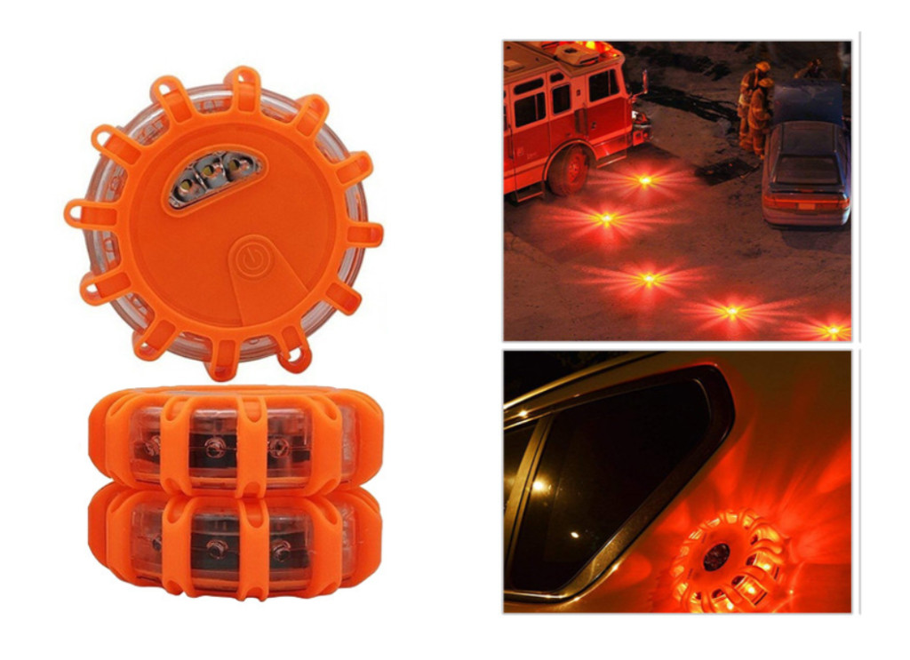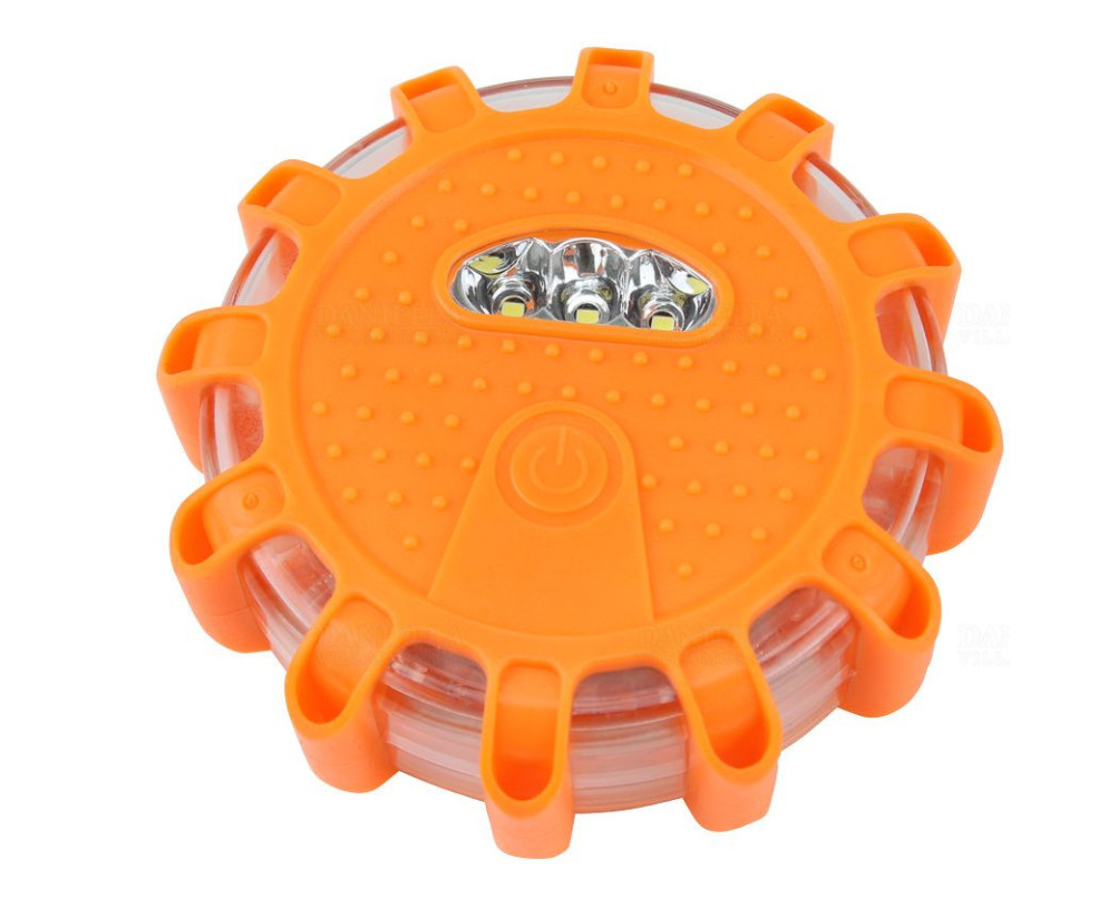 Sárga villogó kerek vészjelző lámpa 12 + 3 LED